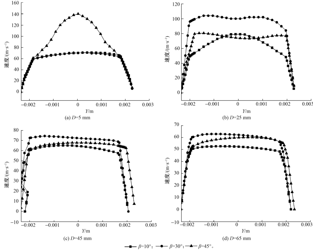 为提高喷气织机引纬性能,采用数值模拟分析方法,利用Fluent软件研究了延伸喷嘴的不同结构及参数对其导纱管内气流速度、气流场稳定性的影响,并对延伸喷嘴结构及其参数进行优化。结果表明:延伸喷嘴最后一个辅喷嘴出口与其纬纱入口的最佳距离应在60 mm左右,距离太大或者太小都会导致导纱管内轴向气流速度减小;延伸喷嘴进气口与纬纱入口最佳距离应在30 mm左右,距离太小会使导纱管内气流场不稳定,距离太大会使导纱管内速度提升不明显;当延伸喷嘴喷射角度在10°左右时,气流速度径向分布的标准偏差最小,导纱管内气流场较为稳定。