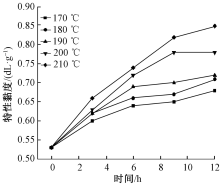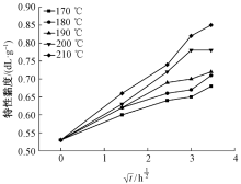 为改善常压型阳离子染料易染聚酯(ECDP)纤维的力学性能,通过提高其切片特性黏度的方法,以熔融缩聚制得的ECDP切片为原料,通过固相缩聚法对其进行增黏得到增黏切片。借助乌氏黏度计、差示扫描量热仪、X射线衍射仪、荧光光谱仪和热失重分析仪等对增黏切片的性能进行测试与表征。结果表明:ECDP切片的固相增黏工艺最佳条件为温度190 ℃,时间9 h;随着反应温度的升高或反应时间的增加,切片的特性黏度增加,且特性黏度与时间的平方根成线性关系;在190 ℃、9 h条件下增黏的切片特性黏度为0.69 dL/g,高于该温度或时间时,切片发生热降解,表面开始变黄。