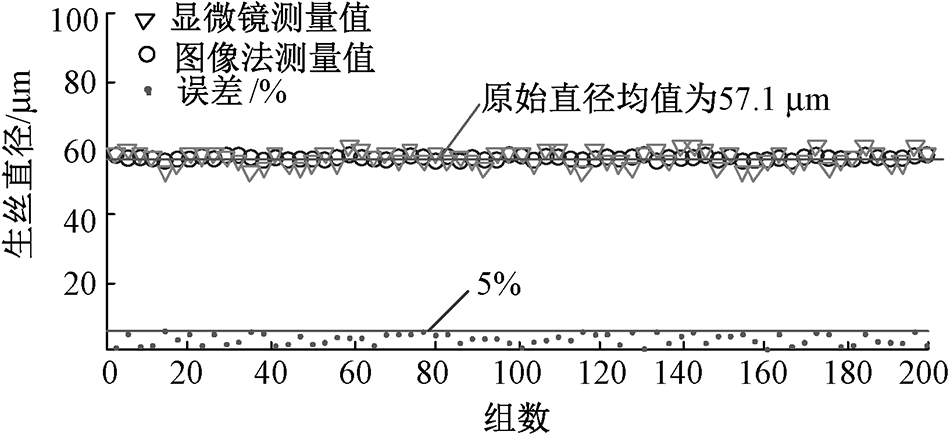 针对现有生丝抱合性能人工检测精准性差,判断标准无客观量化指标等问题,提出一种基于机器视觉的生丝抱合性能检测方法。首先对采集的生丝图像进行二值化处理、干扰信息去除、图像填充、生丝边缘检测,获得单像素生丝边缘特征。然后通过计算生丝径向上、下边缘像素点的直线距离,得到生丝直径相对变化值,根据生丝直径变化的轴向长度确定开裂区域。最后利用开裂区域大于6 mm时对应的生丝抱合摩擦次数表征生丝抱合性能。结果表明,通过该检测方法测得的200组生丝的直径值与显微镜测得的直径值相比,误差均在5%以内,可满足生丝抱合性能检测需求。