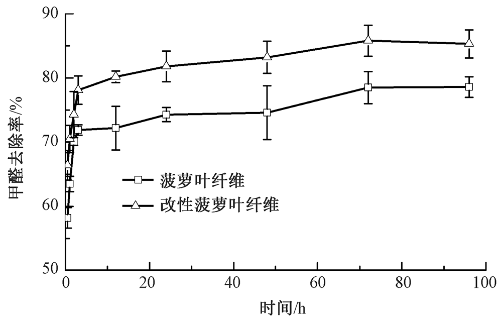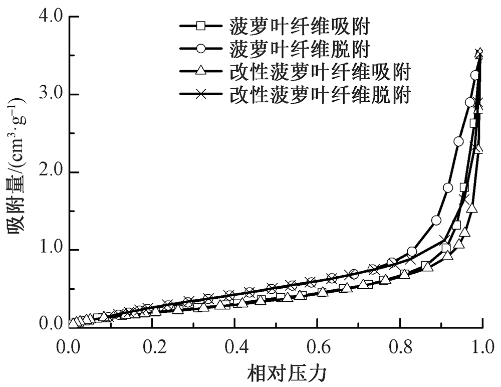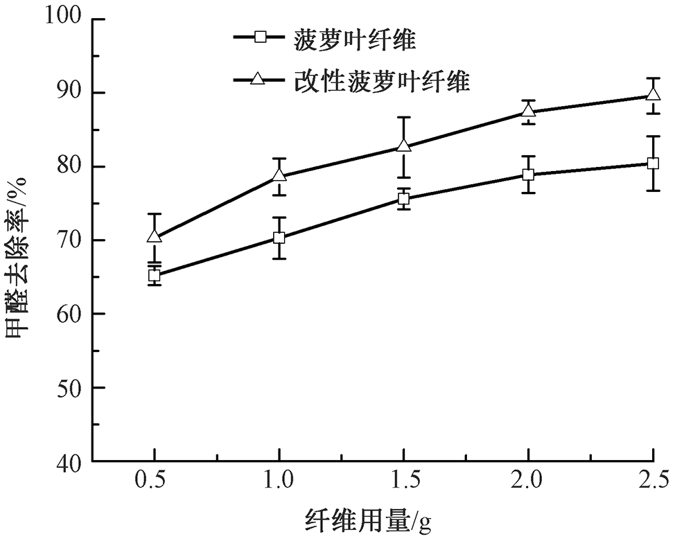 为获得具有高吸附性能的纺织材料,以脱胶菠萝叶纤维为吸附载体,氯化血红素为改性剂,经酯化反应制备了改性菠萝叶纤维。借助扫描电子显微镜、傅里叶红外光谱仪、X射线衍射仪、比表面积及孔径分析仪对改性菠萝叶纤维结构进行表征,并研究其吸附甲醛性能。结果表明:改性菠萝叶纤维表面接枝了氯化血红素,属于Ⅰ型纤维素,其相对结晶度由69.3%下降到66.2%;改性菠萝叶纤维的氮气吸附等温线属于Ⅲ型吸附,有少量孔径为2.0~276.1 nm的中孔与大孔,其比表面积、氮气吸附量、滞后环均变小;改性菠萝叶纤维对甲醛的吸附性好于菠萝叶纤维,其吸附甲醛性能随着甲醛初始浓度的增加而降低,随着纤维用量、反应温度和反应时间的增加而提高。