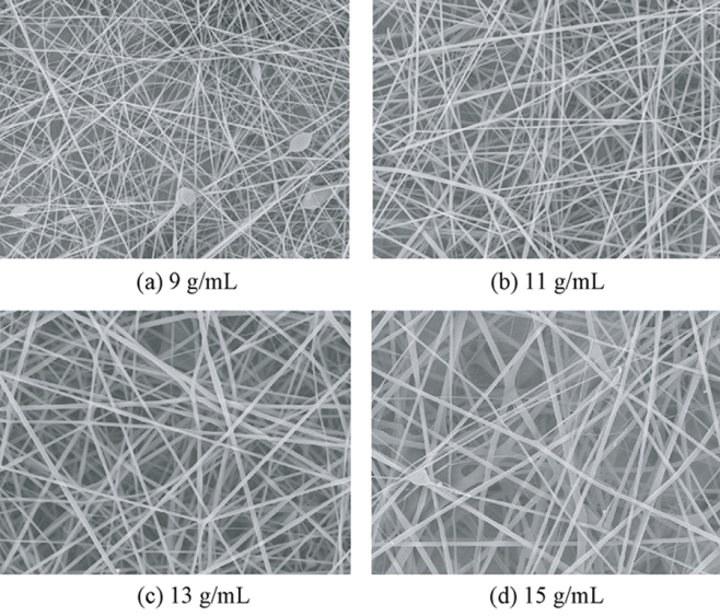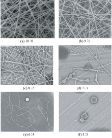 为进一步提升再生丝素蛋白(RSF)在生物组织工程中的应用潜力,将RSF与脱细胞真皮基质(ADM)按照不同质量比溶于甲酸制成纺丝液进行静电纺丝。借助台式扫描电子显微镜、傅里叶变换红外光谱仪、差式扫描量热仪及CCK8试剂盒对纳米纤维的形貌、微细结构及生物相容性进行研究。结果表明:在固定RSF与ADM质量比为9∶1、纺丝液质量浓度为13 g/mL时,所纺制纳米纤维形态更规整,纺丝状态更稳定;当纺丝液质量浓度为13 g/mL时,随着纺丝液中ADM占比的提高,纺丝液的黏度逐渐上升,可纺性变差; ADM与RSF之间存在相互作用,使共混纳米纤维膜中的部分无规结构逐渐向β折叠结构转变; RSF/ADM共混纳米纤维膜具有良好的生物相容性。
