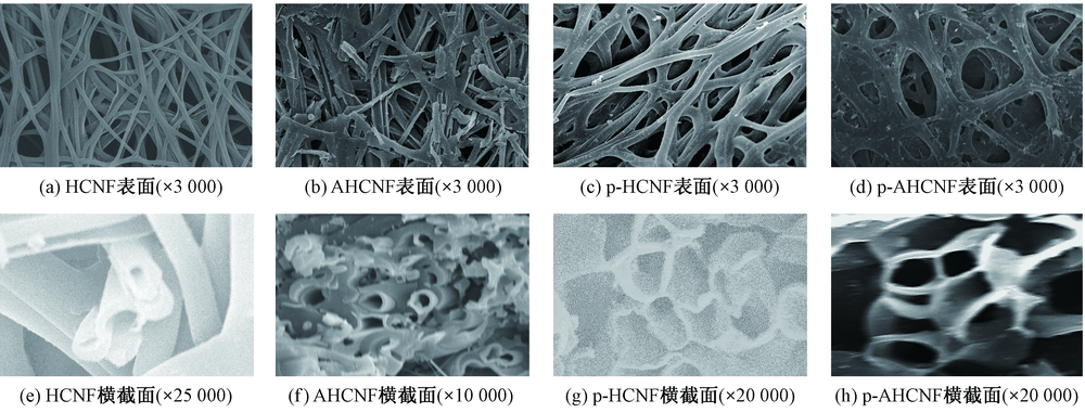 为制备具有较高孔隙率的聚丙烯腈(PAN)活性中空碳纳米纤维(AHCNF),以自行制备的PAN为原料,经同轴静电纺丝、预氧化、炭化、活化后制备得到AHCNF,借助X射线光电子能谱仪、扫描电子显微镜、比表面积测试仪研究了致孔剂对其形态与孔结构的影响。结果表明:制备的PAN共聚物环化温度较低,环化放热较缓和,有利于预氧化的进行;炭化过程将PAN表面的碳氧单键转化为碳氧双键,而活化过程将碳氧双键进一步转化为酯基;添加致孔剂和未添加致孔剂得到的PAN活性中空碳纳米纤维横截面呈明显的中空结构,纤维壁较为致密;添加致孔剂后,活性中空碳纳米纤维的总比表面积从55.719 m2/g增加到532.639 m2/g,孔容从0.070 cm3/g增加到0.312 cm3/g,介孔平均孔径从3.408 nm增加到4.309 nm,收率从27.14%降低到9.44%。