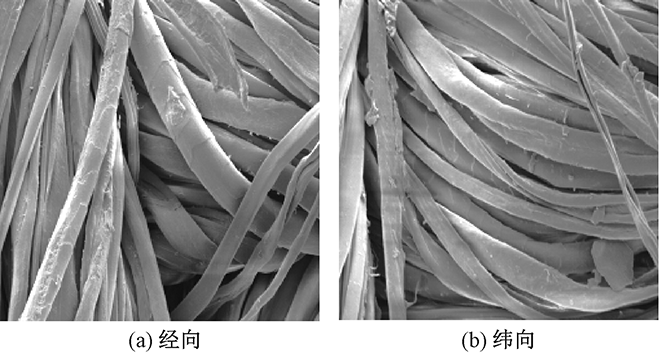 废旧毛/丝/棉混纺面料经、纬向扫描电镜照片(×2 000)"