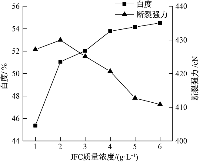 JFC质量浓度对混纺面料白度和断裂强力的影响"
