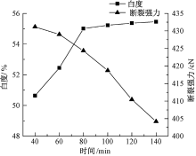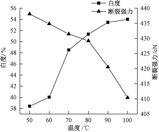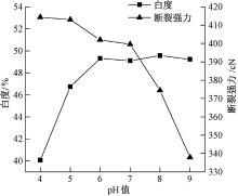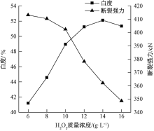 H2O2质量浓度对混纺面料白度和断裂强力的影响"