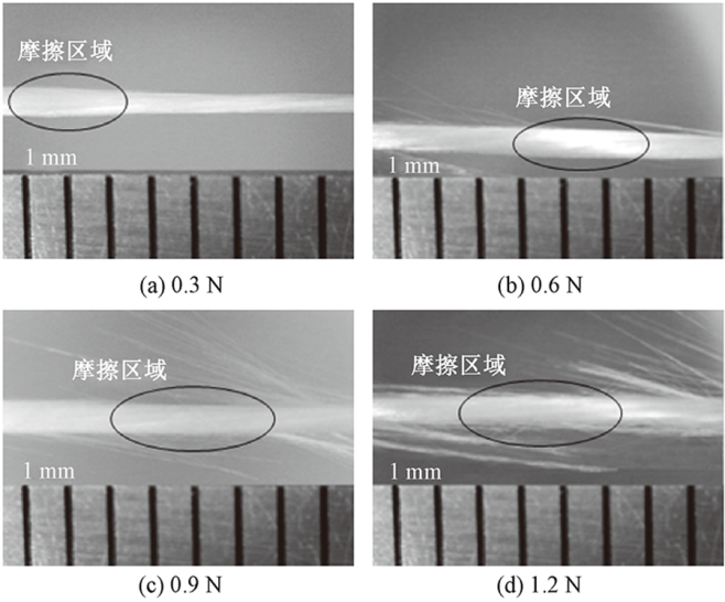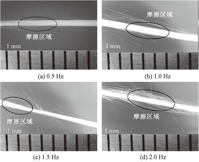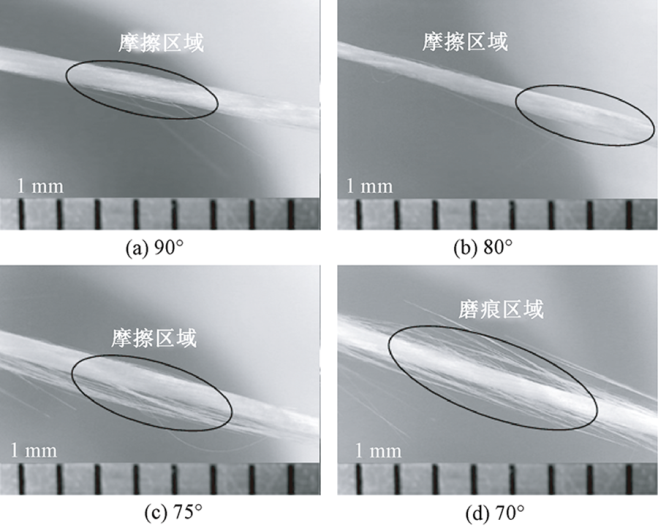 针对立体织物织造过程中高强高模纤维束间相互摩擦而导致织物性能下降的问题,以石英纤维为例,设计了一种用于测试纤维束间摩擦性能的摩擦磨损试验机夹具,使纤维束或单根纤维能够以相互正交或一定角度相接触,在纤维尺度上研究了摩擦角度、摩擦频率和法向载荷对纤维束间摩擦性能的影响。结果表明:3种实验参数对纤维束表面的磨损程度不同;摩擦角度为70°时的摩擦因数是90°时的1.2倍,即摩擦角度越小,磨损程度越大;在一定范围内,摩擦频率和法向载荷对摩擦因数没有影响;在立体织物织造过程中,应尽可能减少纤维束间倾斜接触,从而降低织物性能下降,还可在一定范围内提高织造频率和法向载荷,提高生产效率。