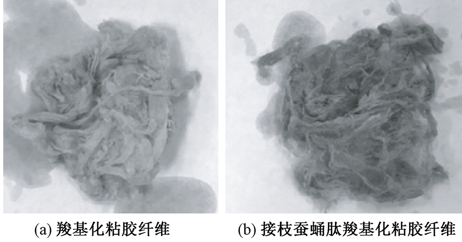为改善粘胶纤维的亲肤性以及对离子型染料的染色性,采用葡萄糖氧化酶(GOD)氧化粘胶纤维制备羧基化粘胶纤维;再以N,N-二环己基碳二亚胺(DCC)为交联剂,接枝蚕蛹肽于羧基化粘胶纤维表面合成接枝蚕蛹肽羧基化粘胶纤维,并对其结构和性能进行表征。结果表明:接枝的蚕蛹肽位于羧基化粘胶纤维表面,由15种氨基酸组成;接枝蚕蛹肽羧基化粘胶纤维可分别用水溶性苯胺蓝、碱性品红、双缩脲等染料染色;羧基化粘胶纤维的最佳制备工艺为GOD用量为粘胶纤维质量的6%,pH值5.5,温度35 ℃;接枝蚕蛹肽羧基化粘胶纤维的最佳制备工艺为DCC用量为羧基化粘胶纤维质量的40%,交联pH值4.0,交联温度60 ℃。