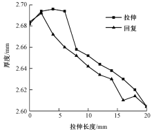 为研究经编光纤传感织物在纵向拉伸状态下织物结构变化对光纤弯曲损耗的影响,编织了一种以经平绒织物为地组织、聚合物光纤为衬纬纱的经编光纤传感织物。将光纤以半径为10 mm的半圆反向相接的形式织入地组织中间位置,形成传感单元。同时,测量了传感织物在拉伸条件下的线圈高度、线圈宽度和织物厚度;并测试了在织物拉伸回复状态下光纤信号的传输性能。结果表明:光纤可通过衬纬的形式与经编织物相结合;在拉伸过程中织物纱段发生转移,织物厚度随拉伸距离的增加而减小;纱线对光纤的挤压作用使光纤产生微弯损耗,且在拉伸过程中微弯和宏弯损耗相互复合。