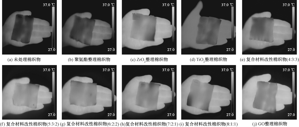 为进一步提高石墨烯基纳米复合材料的远红外发射特性,通过一步水热法利用锆钛氧化物对氧化石墨烯进行纳米复合改性,制备了二氧化锆/二氧化钛/还原型氧化石墨烯(ZrO2/TiO2-rGO)纳米复合材料。以水溶性聚氨酯为黏合助剂将ZrO2/TiO2-rGO与纺织品相结合,制备出具有远红外发射性能的棉织物。借助扫描电子显微镜和傅里叶红外分析光谱对制备的ZrO2/TiO2-rGO复合材料表观形态和内部结构进行表征;通过远红外发射率和红外热成像技术表征了改性棉织物的远红外发射性能。结果表明:在温度为120 ℃,时间为4 h,氧化石墨烯、二氧化钛、氧氯化锆质量比为5∶3∶2的合成条件下整理棉织物时,其远红外发射率较未整理棉织物高出约2.5%;这种方法可有效减少石墨烯含量,且远红外发射性能优良。