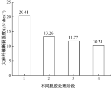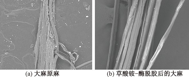 为开发绿色高效的大麻脱胶工艺,提出了草酸铵-酶联合脱胶,采用正交试验优化草酸铵脱胶工艺,并与经传统化学脱胶工艺、化学-酶联合脱胶工艺处理后大麻纤维的脱胶效果进行比较,得到草酸铵-酶联合脱胶最佳工艺条件:草酸铵质量浓度为4.0 g/L,保温温度为100 ℃,保温时间为50 min。结果表明:经最佳工艺处理后大麻纤维的残胶率为2.34%,低于经传统化学脱胶后大麻纤维的残胶率12.88%和化学-酶联合脱胶后大麻纤维的残胶率8.43%;草酸铵-酶联合脱胶后大麻纤维中木质素质量分数由8.10%(大麻原麻)下降到0.94%,断裂强度为10.31 cN/dtex,且白度优于传统化学脱胶工艺和化学-酶联合脱胶工艺处理后的大麻纤维。