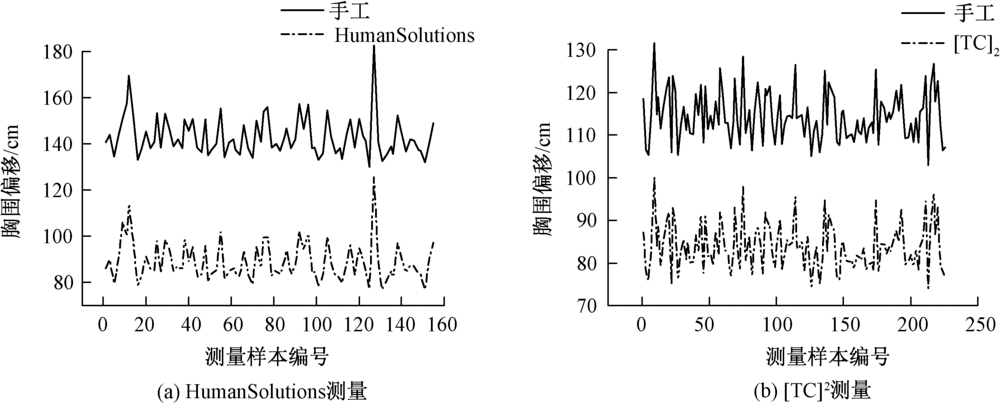 为探究人体测量中三维数据与手工数据间的一致性和可替换性,及不同扫描仪所得结果间的数据等价性,利用HumanSolutions和[TC]2 2种三维扫描仪分别对20~35周岁的女性样本人体进行扫描,通过逆向工程软件手动测量388个样本的30项身体特征尺寸。对比2组三维数据与其对应手工数据的折线图,利用组内相关系数对数据的一致性进行探究;依据国标对三维数据与手工数据间的可替换性进行讨论和判别;以手工数据为媒介,对比2种三维数据与真实值间的一致性和可替换性,判断不同扫描仪数据结果的等价性。结果表明:2种仪器所得数据与手工数据间存在较好的一致性,组内相关系数大于0.75,3种数据在部分测量项上具有较好的可替换性,进行数据处理和分析时可等价使用。