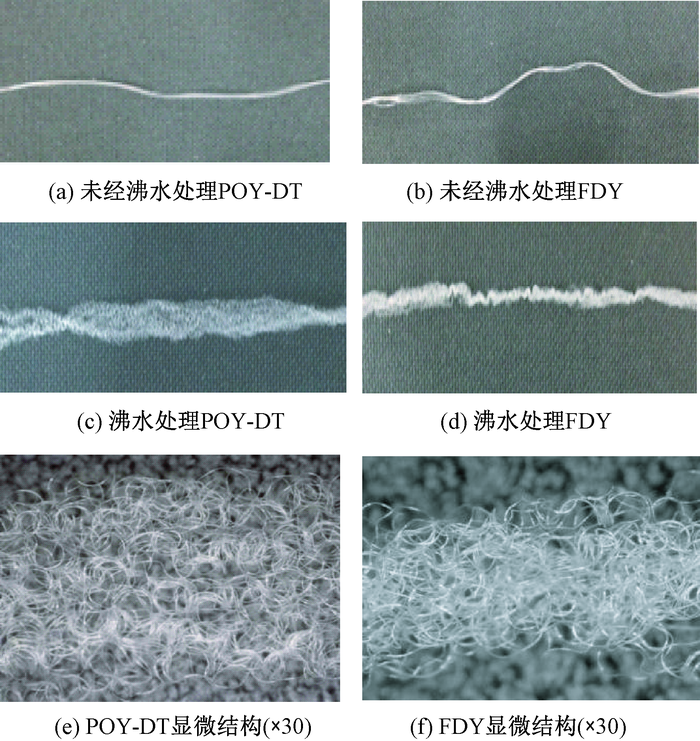 为对比不同纺丝工艺下牵伸和热处理方式等对并列复合纤维性能的影响,以常规聚酯(PET)和瓶级PET为原料,采用将预取向丝(POY)经过牵伸加捻(DT)制备POY-DT和一步法制备全拉伸丝(FDY)2种工艺纺制并列复合纤维,并对纤维卷曲性能、尺寸稳定性和不同热处理方式下的力学性能差异进行比较。结果表明:FDY的整体卷曲性能较POY-DT优异,且FDY的声速取向因子为0.87,明显优于POY-DT的0.43,二者结晶度均在30%左右;FDY经沸水处理后,即时沸水收缩率为8.3%,明显低于POY-DT的12.9%,但随着时间的延长,FDY收缩仍会继续发生,而POY-DT经沸水处理后,可得到尺寸相对稳定的纤维长丝;不同的热处理方式对纤维力学性能影响不同,POY-DT适合干热处理,FDY适合湿热处理。