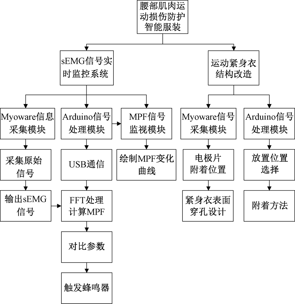 关键词: 智能服装, 可穿戴肌肉疲劳度检测系统, 肌电信号, 肌肉疲劳度指标, 竖脊肌