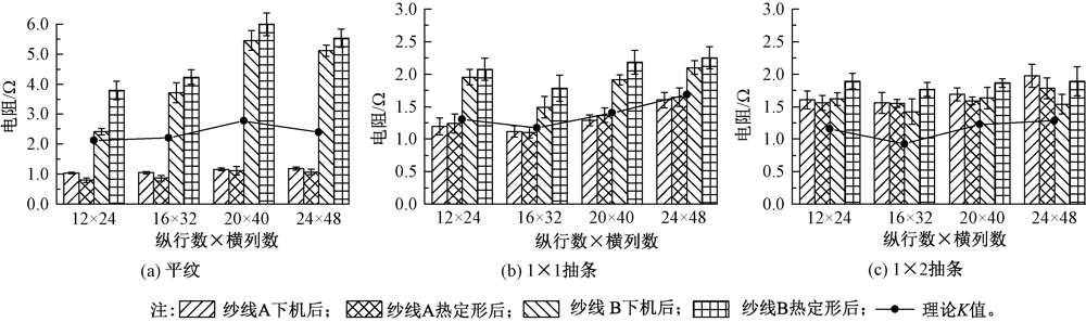 为从理论上指导基于纬编针织物电极智能腿套的设计,建立电阻模块理论模型,选用2种导电材料、3种组织结构和4种电极尺寸制作了24种腿套试样,测试其热定形前后腿套电极部位的导电性能,探讨不同因素对织物电极等效电阻的影响,同时建立织物电极等效电阻线性拟合模型。结果表明:不同因素对织物电极导电性能均有显著影响,且原料对导电性能影响最显著;镀银纱织物热稳定性较好,对于需热定形处理的导电织物可选用镀银锦纶纱为原料;建立的电阻模块理论模型可用于定量分析和预测织物电极的等效电阻。