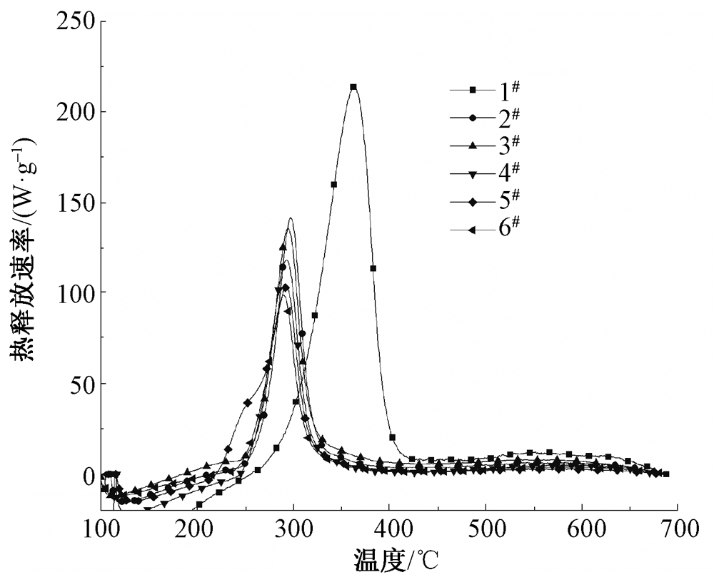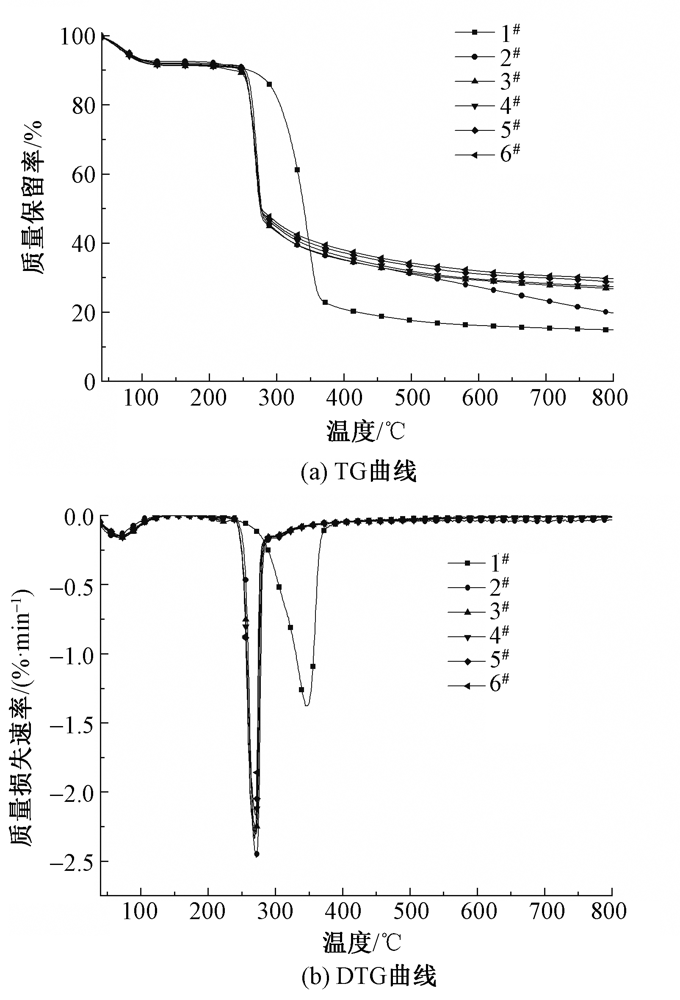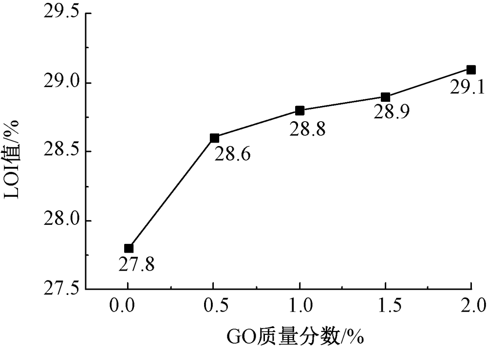 为提高粘胶/二硫代焦磷酸酯(VF/DDPS)纤维的阻燃及力学性能,以氧化石墨烯(GO)作为协同阻燃剂添加到VF/DDPS基体中,通过湿法纺丝工艺制得VF/DDPS/GO复合纤维。借助热重分析仪、极限氧指数仪、微型量热仪和单丝强力仪研究GO对VF/DDPS复合纤维热性能、阻燃性能和力学性能的影响。结果表明:与VF/DDPS纤维相比,当GO质量分数为2.0%时,VF/DDPS/GO复合纤维的残炭量从20.0%增加到29.7%,极限氧指数从27.8%升高到29.1%,热释放速率峰值从141.5 W/g降低到99.4 W/g,干、湿断裂强度分别从2.08、0.96 cN/dtex增加到2.20、1.17 cN/dtex;GO的添加可提高VF/DDPS炭渣的石墨化程度和致密度,增强炭渣的热质阻隔作用。