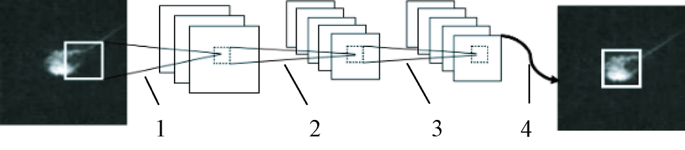 YOLOv2目标检测算法的框架 1—图像特征提取分类; 2—图像识别(边界框预测);3—非极大值抑制; 4—边界框回归。"