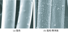 为制备得到电导率高且稳定性好的应变传感器,采用原位聚合法制备了氨纶/聚苯胺复合导电纤维并分析了其结构与性能;以复合导电纤维和水溶性聚氨酯为原料,制备了氨纶/聚苯胺/聚氨酯复合材料,研究了其在不同拉伸状态下的应变传感性能。结果表明:氨纶纤维表面形成一层致密的聚苯胺导电层,其电导率达到0.626 S/cm;氨纶/聚苯胺复合导电纤维的往复拉伸可造成纤维表面聚苯胺导电层的破坏,影响其应变传感性能的重复性;聚氨酯的保护提高了氨纶/聚苯胺/聚氨酯复合材料应变传感性能的重复性,在100%应变条件下,经10次拉伸和拉伸-回复后,复合材料的电阻值与初始值的比值较氨纶/聚苯胺复合导电纤维分别下降约66.7%和50.0%。