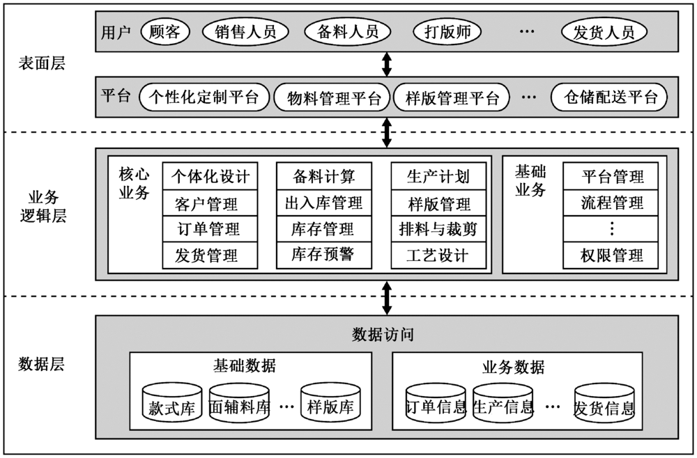 在开展个性化定制业务过程中,中小型服装企业易存在市场应变能力不强、信息化投入不足、数据利用能力较弱等问题,为此,构建了一个基于软件即服务(SaaS)模式的订单云管理体系。在分析该管理体系主要功能需求的基础上,优化提出了可充分借助云计算服务的服装个性化定制业务流程,设计了易于计算机处理的物料管理编码和业务数据信息体系。基于三级分层搭建了该订单管理体系的技术架构,设计了主要业务单元的智能化操作平台和核心计算技术。最后采用Java语言进行订单管理体系的开发,实现了订单信息的全流程、实时化、全方位共享,以期有效提升服装个性化定制业务的信息化管理水平。