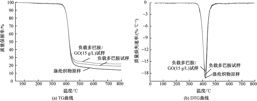 为解决涤纶织物的易起静电问题,通过多巴胺原位聚合和氧化石墨烯循环浸渍层层自组装负载实现其抗静电功能,制备一种涤纶基抗静电织物。借助扫描电子显微镜、红外光谱仪、织物静电测试仪等表征织物的结构和抗静电性能。结果表明:多巴胺的引入有利于氧化石墨烯的负载,同时增加织物表面的亲水基团,直接改善涤纶织物的抗静电性能;当氧化石墨烯质量浓度低于20 g/L时,随着其质量浓度的增加,织物的抗静电性能逐渐提高,当质量浓度保持在15 g/L时,平纹涤纶织物的表面静电压和半衰期分别为1 156 V、1.210 s,斜纹涤纶织物的表面静电压和半衰期则为1 243 V、1.510 s;经15次水洗,平纹涤纶织物的表面静电压和半衰期仍能达到1 179 V和1.290 s,斜纹涤纶织物表面静电压和半衰期可达1 263 V和1.580 s。