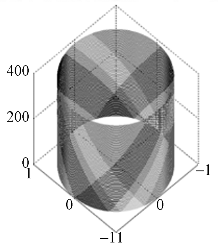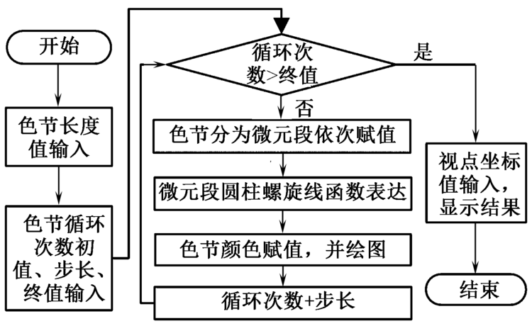 为给段染纱横编袜子的花纹设计提供理论参考,分析了筒形织物的横机圆周编织方式,以及段染纱在筒形织物中色段的分布规律,并用圆柱螺旋线来模拟其分布规律。借助MatLab模拟出既定段染纱筒形织物的花纹,模拟花纹与织物实样花纹有良好的一致性,同时给出段染纱横编袜子花纹形成的几种方法。研究结果表明:段染纱的色段分布规律结合筒形织物的圆周编织方式,可形成多样的花纹,花纹形状可由圆筒一周的用纱长度与色段循环长度的比例关系确定;用MatLab圆柱螺旋线程序可方便地模拟出花纹;生产中可通过改变线圈长度设计横编袜子花纹,也可根据设计的花纹选择段染纱。