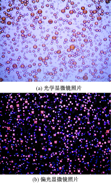 染料掺杂型液晶微胶囊金相显微镜照片(×500)"
