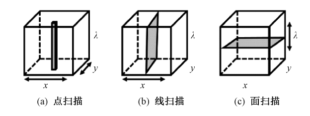 高光谱图像采集方法 x—x轴向空间维度;y—y轴向空间维度;λ—光谱维度。"