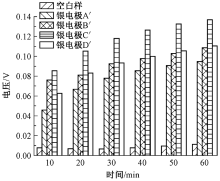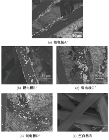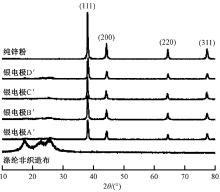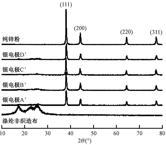 不同银电极与纯银粉及涤沦非织造布的XRD图"