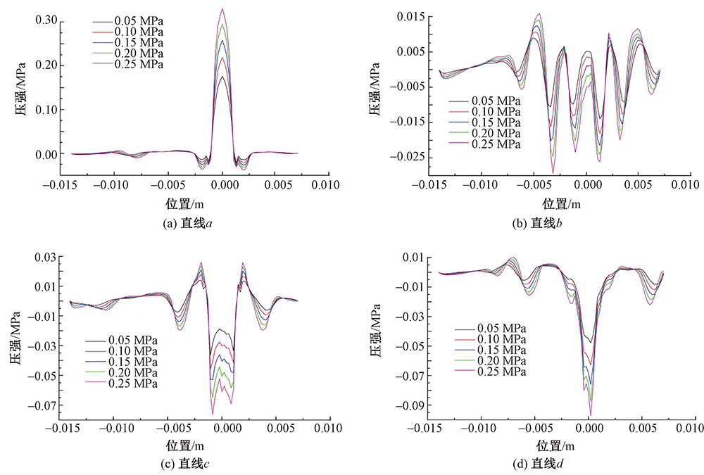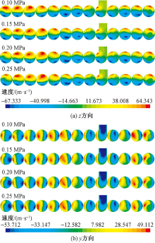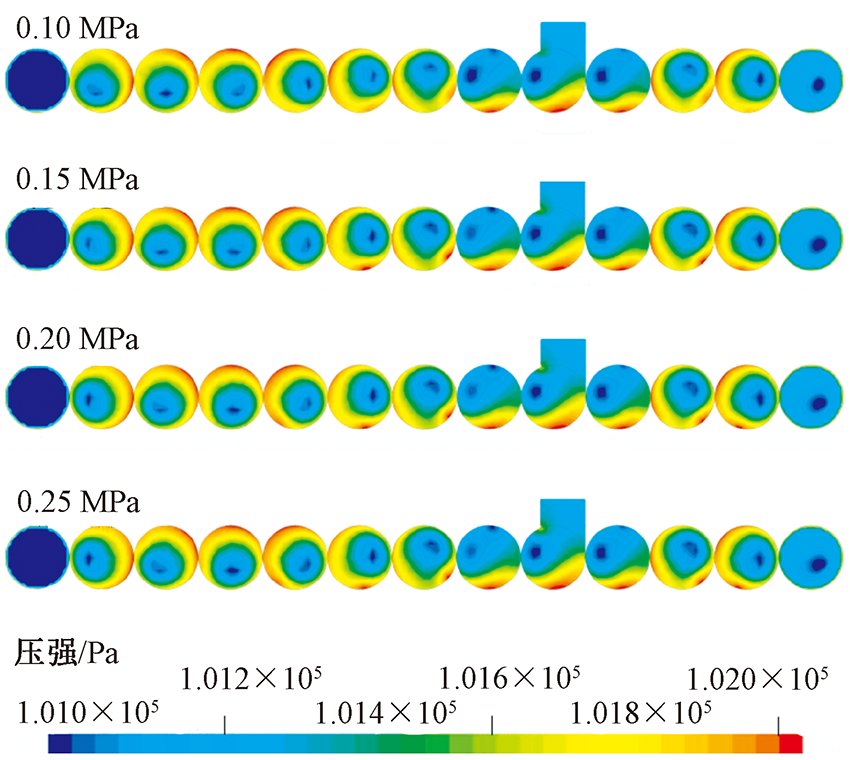 为探究在不同环锭旋流喷嘴气道入口压强条件下喷嘴内部的流场分布规律,借助STAR-CCM+与ANSYS CFX流体分析软件建立旋流喷嘴模型并进行数值模拟分析,得到在纺纱过程中旋流喷嘴内部气流的速度和压力分布云图。结果表明:空气通入气道入口的流动机制遵循涡流效应,以旋流状向纱道两端流出,向两侧流出的旋流可对纱线进行轻微解捻和毛羽的进一步贴服;喷嘴内部流场对比示意图表明入口压强对纱线受力的分布并无影响,但气流压强波动幅度随入口压强的增大而增大,波动幅度越大越利于毛羽的包裹,对纤维束的包裹作用也更强烈,但过大的气流压强会造成更多纤维的流失。