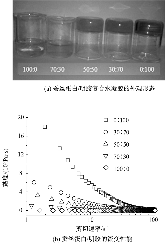 针对蚕丝蛋白水凝胶不易快速凝胶成型的问题,将明胶蛋白水溶液与蚕丝蛋白以一定质量比复合,通过挤出式3D打印设备制备得到蚕丝蛋白/明胶复合水凝胶,并对复合水凝胶的流变性能、微观结构和生物相容性进行分析。结果表明:明胶的添加提高了复合水凝胶的黏度和储能模量,有利于3D打印过程中蚕丝蛋白的快速凝胶成型;明胶的添加未对蚕丝蛋白的二级结构产生影响,通过3D打印法可制备具有微周期格栅状蚕丝蛋白/明胶复合水凝胶支架,该支架具有三维多孔结构;当蚕丝蛋白与明胶质量比为50∶50时,复合水凝胶支架的断裂强度达3.43 MPa,是纯蚕丝蛋白的3.9倍;培养7 d后,MC3T3-E1细胞可在复合水凝胶支架上生长、增殖和分化。