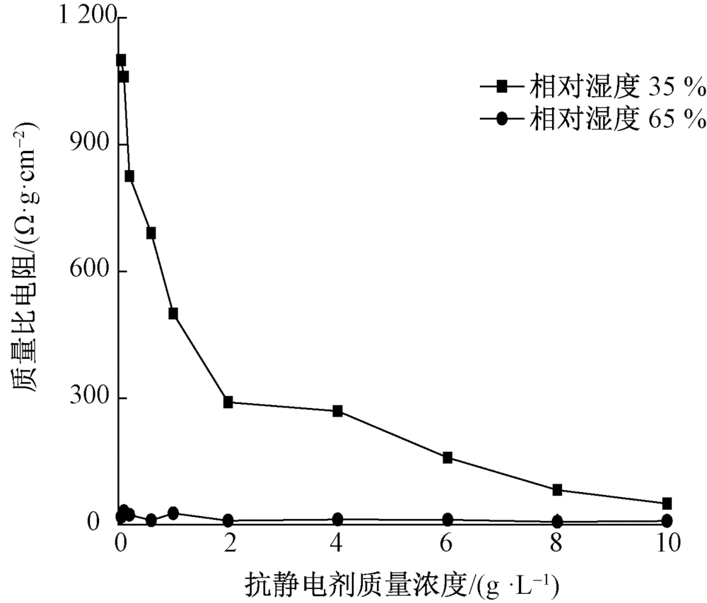 Aiming at the problems of high mass specific resistance, serious static electricity and poor spinnability of bio-based polyamide 56 (PA56) staple fibers, a spinning oil was developed using the compound technology of commercial oil and antistatic agent. The influence of antistatic agent concentration on the conductivity and pH value of the compound oil was studied. The surface morphology, friction coefficient, mass specific resistance and carding performance of the bio-based PA56 staple fibers were investigated. The results showed that a smooth and uniform oil film was formed on the fiber surface after the compound oil treatment. The optimum concentration of antistatic agent and spinning oil were 2 g/L and 12 g/L respectively. Under this condition, a fiber-web from the PA56 staples was formed at the relative humidity of 35% and room temperature, which was uniform without holes and cloud spots. This compound spinning oil improves the bunching, antistatic and spinnability of PA56 staple fibers. It is a green and energy-saving method, requiring only for ambient temperature and humidity of spinning workshop.