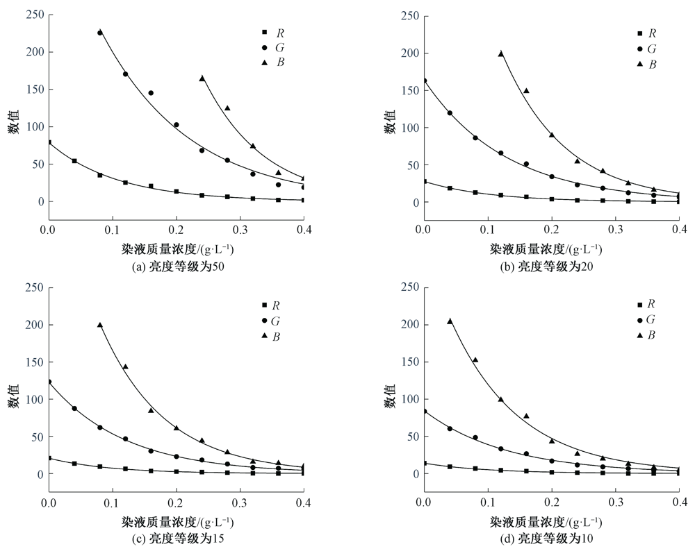 针对印染行业的单组分染液浓度的检测需求,提出一种基于机器视觉的对单组分染液浓度进行快速检测的方法。该方法采用颜色亮度可调的背光光源和彩色工业相机搭建机器视觉检测平台,将质量浓度范围在0~0.4 g/L的单组分染液样品通过玻璃皿置于背光光源上进行图像采集和处理,获取染液颜色特征值(R、G、B值),拟合不同光源条件下的R、G、B值随染液浓度变化的曲线,以朗伯比尔定律为依据建立R、G、B值与染液浓度的关系模型,实现染液浓度的预测。结果表明,对于DRA-3R染料溶液,光源为蓝光(亮度等级为50)条件下建立的最小值模型预测精度最高,平均相对误差绝对值为3.35%,并且该方法检测速度快、成本低,为染液浓度在线检测的工业化应用提供了一定的研究基础。