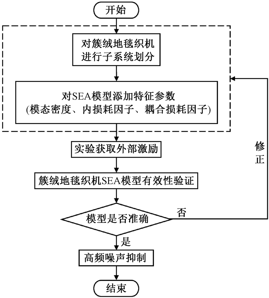 为有效抑制簇绒地毯织机高频噪声,提出了基于统计能量分析(SEA)的簇绒地毯织机高频噪声降噪方法,并运用三聚氰胺多孔吸声材料实现了高频噪声的抑制。首先建立了包含13个结构子系统和10个声腔的簇绒地毯织机高频噪声SEA模型,随后采用理论计算方法确定了各子系统的模态密度、内损耗因子以及耦合损耗因子。实验测量了簇绒地毯织机工作时振动加速度信号从而获取SEA模型高频噪声声压级,并通过与簇绒地毯织机工作时实际声压级情况对比验证了SEA模型的有效性。最后在簇绒地毯织机表面粘附了不同厚度的三聚氰胺多孔吸声泡沫板实现降噪。结果表明:该方法能够满足工程上对簇绒地毯织机高频噪声抑制的要求,且噪声频率和三聚氰胺多孔吸声材料的厚度均对结果有影响。