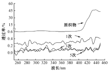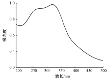 不同Ti3C2Tx整理次数织物的紫外线透过率 示出Ti3C2Tx的紫外-可见图谱。可以看出,Ti3C2Tx在255~350 nm是UV高吸收波段,这可能对应于氧化态Ti3C2Tx的带隙能[20],而且此波段处于UVA和UVB波长范围内,验证了Ti3C2Tx对UVA和UVB有很好的屏蔽效果。 "