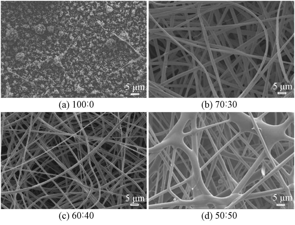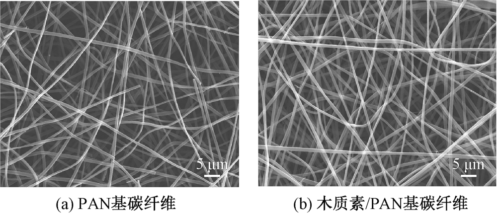 为实现木质素作为一种可再生、易降解的环保原材料在制备碳纤维领域的应用,通过静电纺丝、预氧化和炭化工艺制备了木质素/聚丙烯腈基碳纤维。借助旋转流变仪、电导率仪、扫描电子显微镜、傅里叶变换红外光谱仪、X射线光电子能谱仪和比表面积测试仪研究了木质素的添加对纺丝溶液的性质、预氧丝和碳纤维结构与性能的影响。结果表明:在保证溶液可纺性和纤维成纤性的基础上,木质素与聚丙烯腈的质量比可提高到90∶10,最大程度地实现了木质素的高值化利用;添加木质素后,预氧丝具有耐热稳定的梯形结构,制备的碳纤维比表面积从50.49增大到849.89 m2/g,在电池和超级电容器等能源领域具有重要的潜在应用价值。