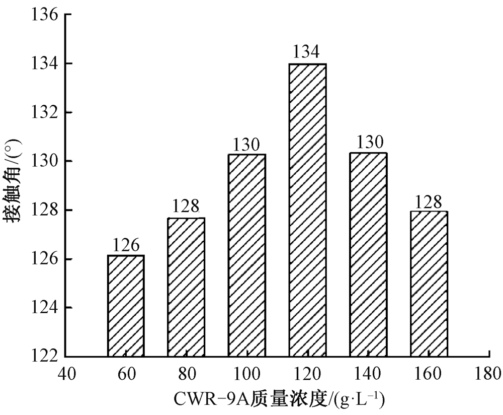 为满足锦纶/棉混纺织物用于户外运动产品的特殊要求,采用无氟拒水剂CWR-9A对混纺织物进行拒水涂层处理,并选取黏合剂来进一步提高拒水剂与织物间的粘接牢度。探讨了拒水剂质量浓度、焙烘时间、焙烘温度、黏合剂种类、黏合剂与拒水剂体积比、洗涤次数等对混纺织物拒水效果的影响,得到锦纶/棉混纺织物拒水整理最佳工艺:CWR-9A质量浓度为120 g/L,焙烘温度为170 ℃,焙烘时间为90 s,黏合剂BD-01与拒水剂CWR-9A的体积比为1∶20。对整理后织物的表面结构和形貌进行了表征,测定了整理后织物的接触角、拒水等级等。结果表明:黏合剂BD-01的引入可显著提高无氟拒水剂与混纺织物的粘接牢度,其接触角最高为138°,拒水等级最高达到5级。