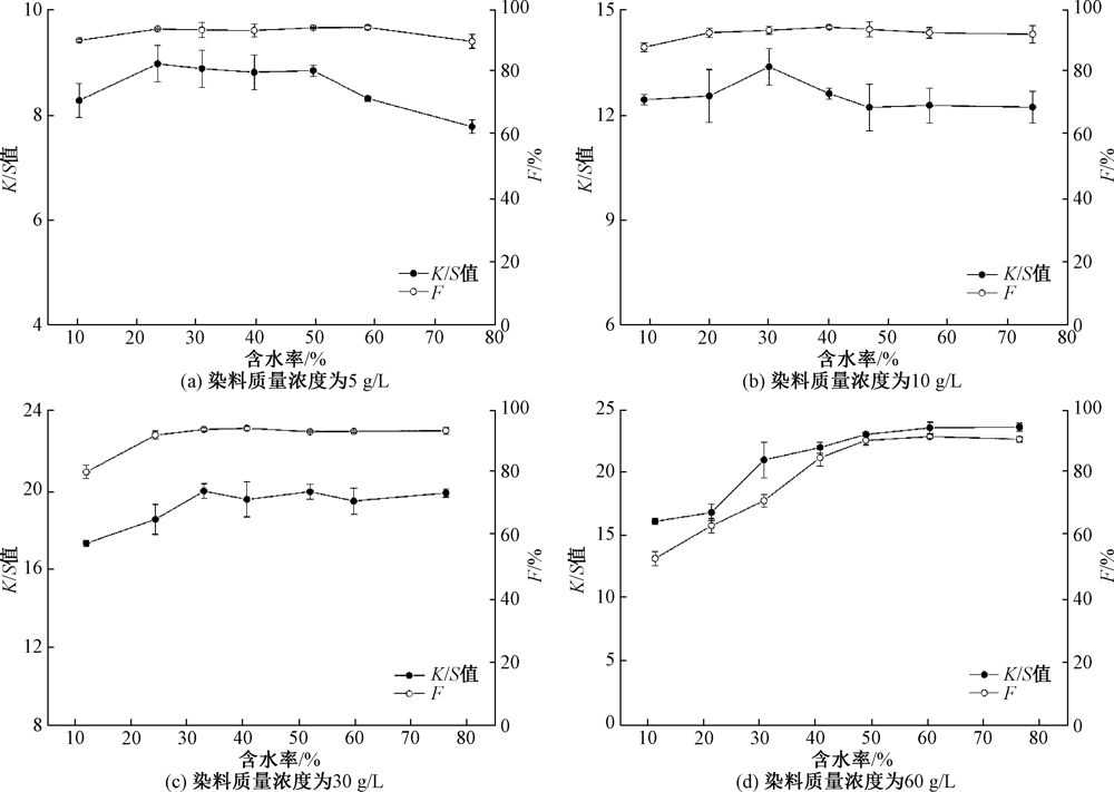 含水率对染色织物K/S值和染料固色率的影响 "