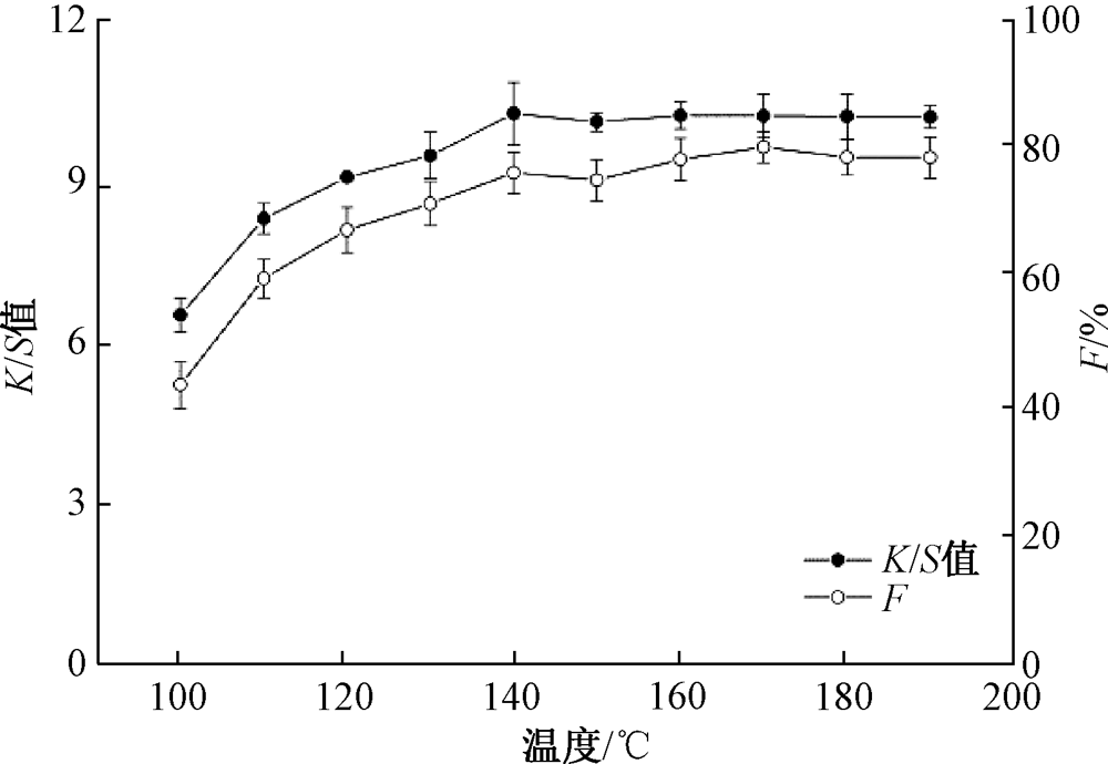温度对染色织物K/S值和染料固色率的影响 "