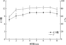 时间对染色织物K/S值和染料固色率的影响 "