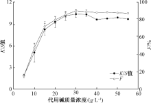 代用碱质量浓度对染色织物K/S值和染料固色率的影响 "