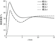 为改善熔喷流场和降低纤维直径,在普通双槽形气流模头的基础上设计了新型模头,并对其进行数值研究。借助Gambit软件建立新型模头的几何模型,采用Fluent软件对其流场进行模拟,分析了纺丝线上的速度、温度、湍流强度分布规律及其对纤维牵伸细化的影响。结果表明:与普通的双槽形模头相比,带有内稳定器的新型双槽形熔喷模头可有效地减小回流区的面积,增大纺丝线上的速度极大值,降低纺丝线上的速度波动和温度衰减速率;带有空气压缩器的新型气流模头可提高纺丝线上的流场速度和温度,但对模头附近的逆向速度和湍流强度峰值几乎没有影响;综合对比,同时带有内稳定器和空气压缩器的新型熔喷气流模头性能最佳,更有利于细化纤维。