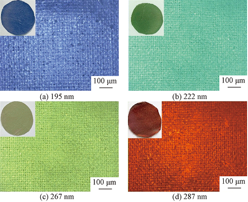 | [6] | WANG F, ZHANG X, ZHANG L, et al. Rapid fabrication of angle-independent structurally colored films with a superhydrophobic property[J]. Dyes & Pigments, 2016, 130:202-208. |