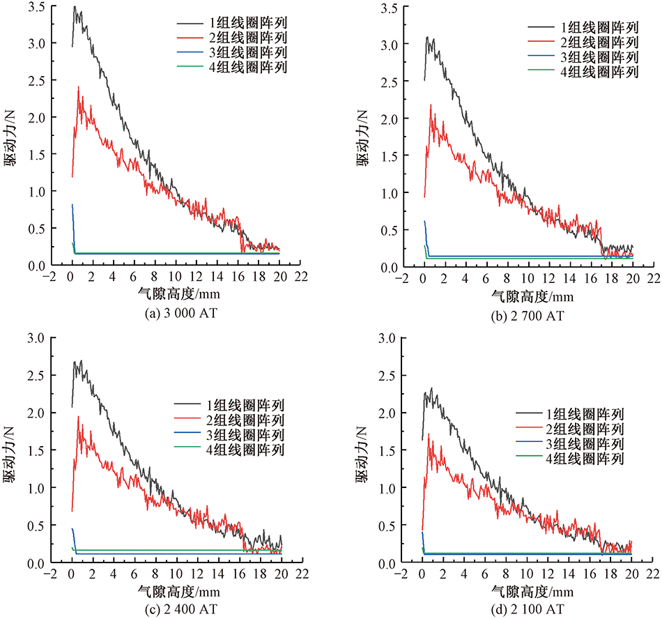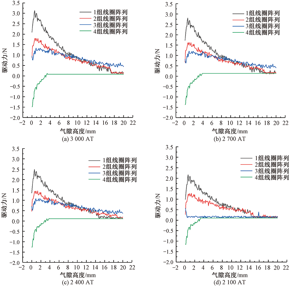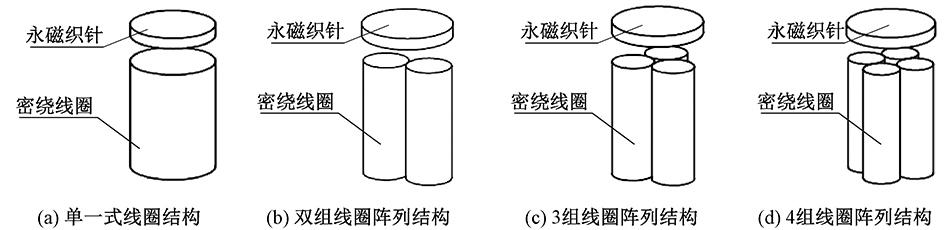 为了改善织针的驱动性能,通过对密绕线圈阵列结构分析,确定悬浮织针的驱动结构,以提高空间磁场强度和悬浮织针驱动力;并根据毕奥-萨伐尔定律,推导密绕线圈阵列结构的电磁模型,分析计算不同密绕线圈结构及阵列方式在中心轴线上任意位置的磁感应强度,以及不同气隙高度下永磁织针的电磁驱动力;利用电磁仿真软件建立密绕线圈阵列结构驱动模型,得到单一式和阵列式密绕线圈结构对永磁织针所受电磁驱动力的数值曲线。最后通过搭建密绕线圈阵列驱动实验测试平台,对比仿真和实验结果。研究表明:圆柱形密绕线圈在永磁织针驱动系统中驱动性能更佳,且单组密绕线圈产生的驱动力大于多组阵列产生的驱动力。