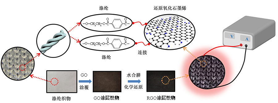 关键词: 电加热器, 还原氧化石墨烯, 浸涂法, 针织物, 电加热性能, 智能可穿戴