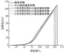 涤纶织物及RGO涂层涤纶织物水洗前后应力-应变曲线"