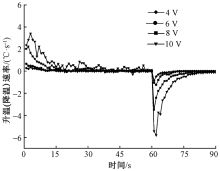 不同电压下RGO涂层涤纶织物的升温/降温速率曲线"