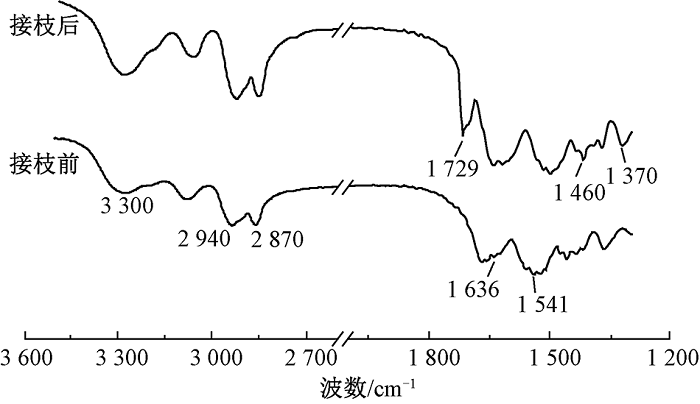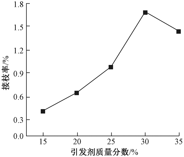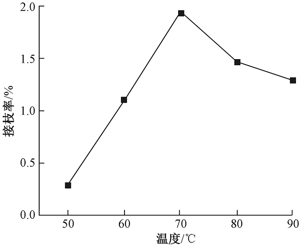 针对长时间光照下锦纶6织物白度下降的问题,采用双氧水/抗坏血酸(H2O2/H2A)引发甲基丙烯酸甲酯(MMA)接枝改性锦纶6,研究了接枝时间、接枝温度、引发剂质量分数和单体浓度对接枝率的影响,并对接枝改性前后织物的微观形貌、化学结构、白度和服用性能进行表征。结果表明:最佳接枝工艺为接枝温度70 ℃,接枝时间60 min,引发剂H2O2/H2A质量分数30%,MMA浓度1.5 mol/L;接枝改性后锦纶6织物表面变得粗糙,附有小颗粒状物质;在紫外光下照射8 h后,接枝改性锦纶6织物的白度由未改性的58.6提高至70.53,表现出优良的耐光性能,且硬挺度由10.7增加至23.6,光滑度由71.7增加至80.3,可保持良好的服用性能。