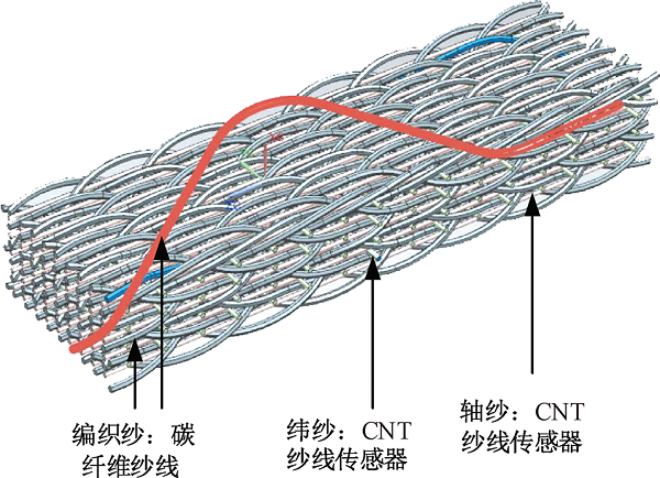 嵌入CNT纱线的三维编织复合材料预制件结构图"