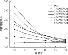 为解决智能防水透湿膜材料温敏响应度低和温敏透湿通量不足的问题,将聚N-异丙基丙烯酰胺(PNIPAM)通过涂覆的方式复合于具有多级孔结构的聚氨酯(PU)梯度膜上,通过调控PNIPAM的涂覆量制备PNIPAM/PU梯度复合膜,并对复合膜的结构、温敏亲-疏水性和温敏湿热传递性进行研究。结果表明:PNIPAM温敏层的构筑不仅没有改变膜材料的多级孔结构,还赋予了梯度复合膜材料温敏亲-疏水转变性能,即低于转变温度(30 ℃)时表现为亲水性,高于转变温度时表现为疏水性;PNIPAM的引入提高了梯度复合膜的温敏透湿通量,50 ℃时PNIPAM质量分数为6%的梯度复合膜的透湿率为6 398.3 g/(m2·24 h),高于PU膜的透湿率(4 843.4 g/(m2·24 h)),且PNIPAM的质量分数越高,梯度复合膜的溶胀性随温度的增加下降越显著。