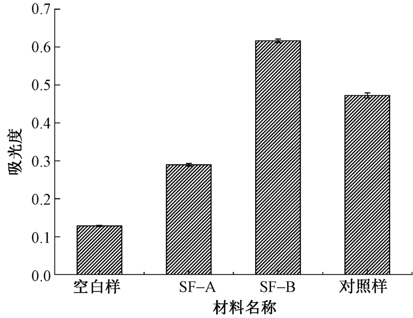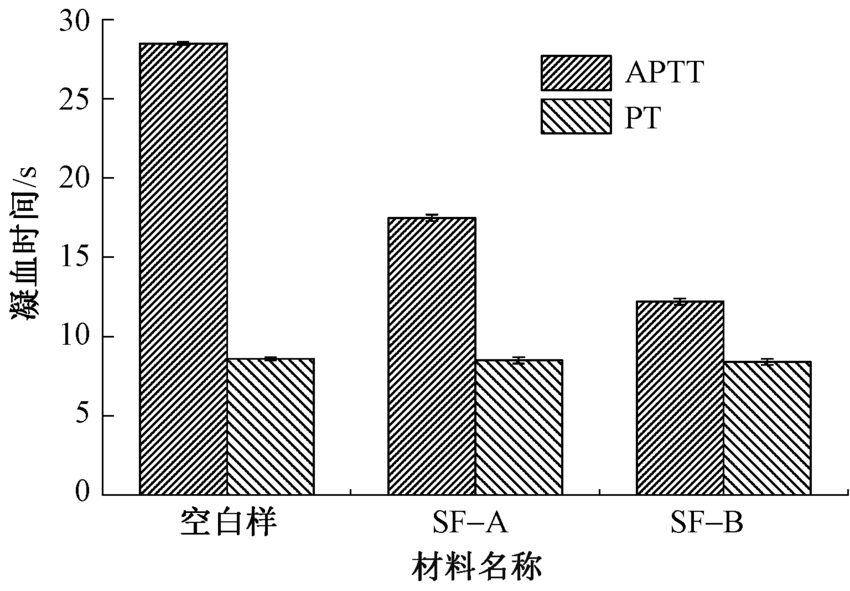 为提升蚕丝丝素蛋白材料的止血性能,采用盐解和酶解2种方式水解蚕丝丝素蛋白,通过冷冻干燥法制备得到2种蚕丝丝素蛋白材料。通过凝胶过滤色谱、水溶性实验、凝血因子实验、血小板黏附实验、酶联免疫吸附实验等分析了2种蚕丝丝素蛋白材料的分子质量、水溶性和止血效果。结果表明:与盐解法相比,酶解所得材料具有较低的分子质量和较好的水溶性,有利于激活凝血因子Ⅻ从而对内源性凝血起到促进作用,止血时血小板黏附量和血小板第4因子含量会明显增加,大鼠肝部出血量减少且出血时间缩短,其止血效果优于市售云南白药。