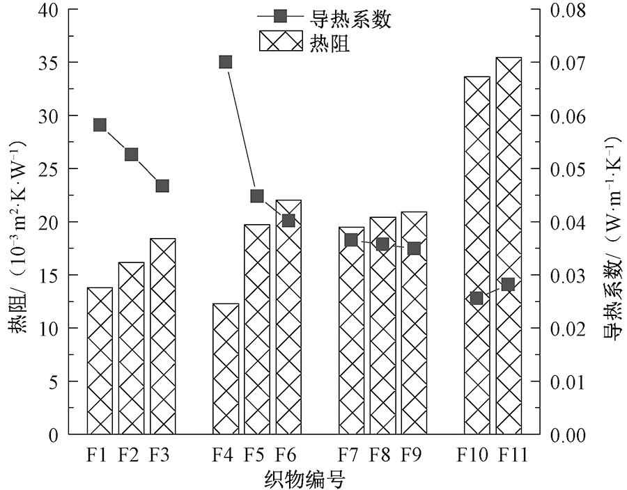 为研究织物结构参数对聚乙烯针织物热湿舒适性能的影响,选取3种规格的聚乙烯长丝织成双罗纹针织物,并选用涤纶、凉感涤纶长丝制备相同结构双罗纹织物作为对比试样,研究构成织物的原料种类、未充满系数、捻度对织物孔隙率、透气性、导热及导湿性能的影响。结果表明:在织物结构相同的情况下,构成织物的原料、未充满系数与织物透气、导湿、导热等热湿舒适性能显著相关;纱线捻度与织物的导热及导湿性能显著相关;与涤纶、凉感涤纶织物相比,聚乙烯长丝表面存在沟壑,结晶度、取向度较高,其织物具有优良的透气、导湿和导热性能,是制备凉爽舒适功能纺织品良好原材料。